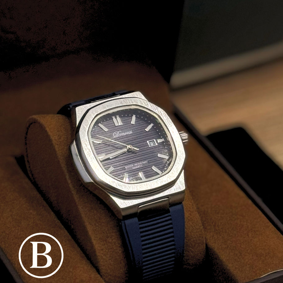 El Denvosi BlueWave Quartz combina estilo moderno y elegancia deportiva en una sola pieza. Su esfera azul con textura ondulada evoca la profundidad del océano, mientras su caja de acero inoxidable y correa de silicona azul marino ofrecen comodidad y presencia en cualquier ocasión.
